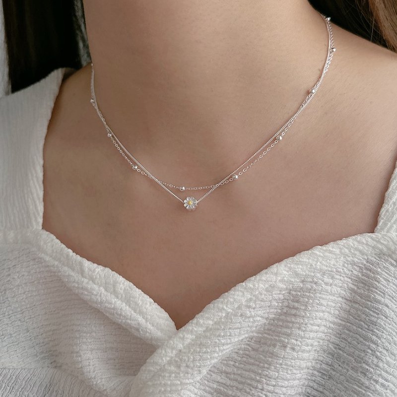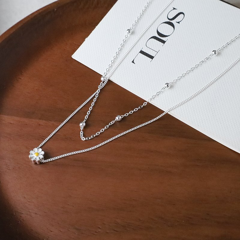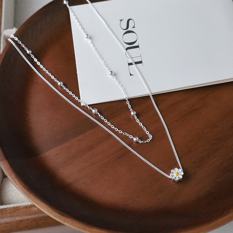 N499-C 小雛菊間隔珠珠雙鍊套鍊