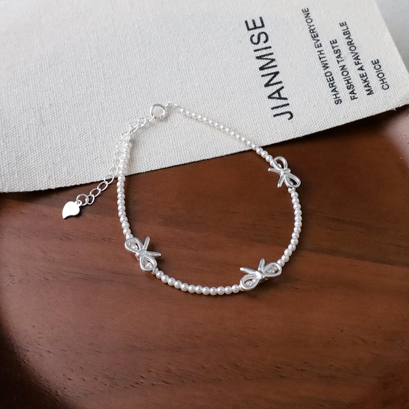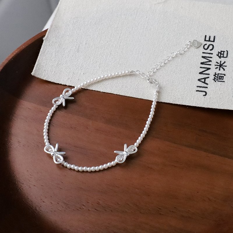 HB-428-E 間隔蝴蝶結拼接珍珠造型手鍊