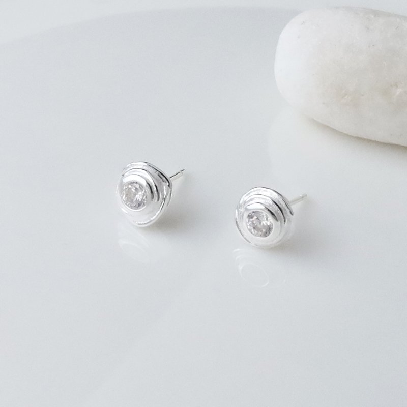 EB-373-B 銀白K貓眼刻紋造型易扣耳環
