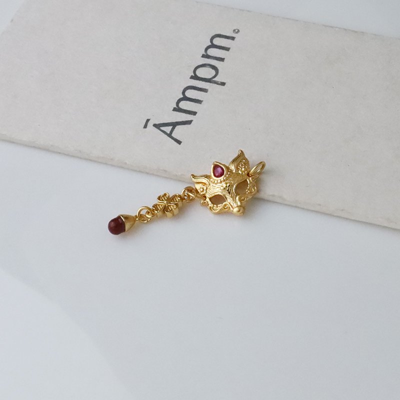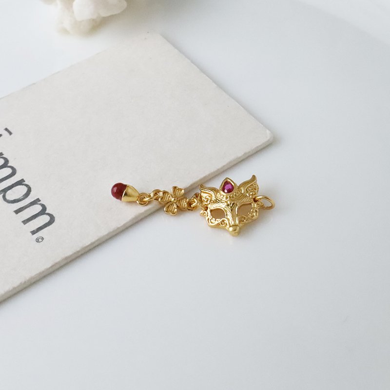 T17-10-D 水滴鑲鑽狐狸垂吊四葉草(黃K金)(配件)(1入)