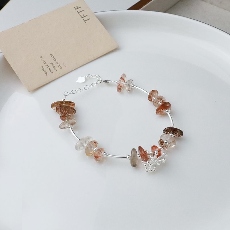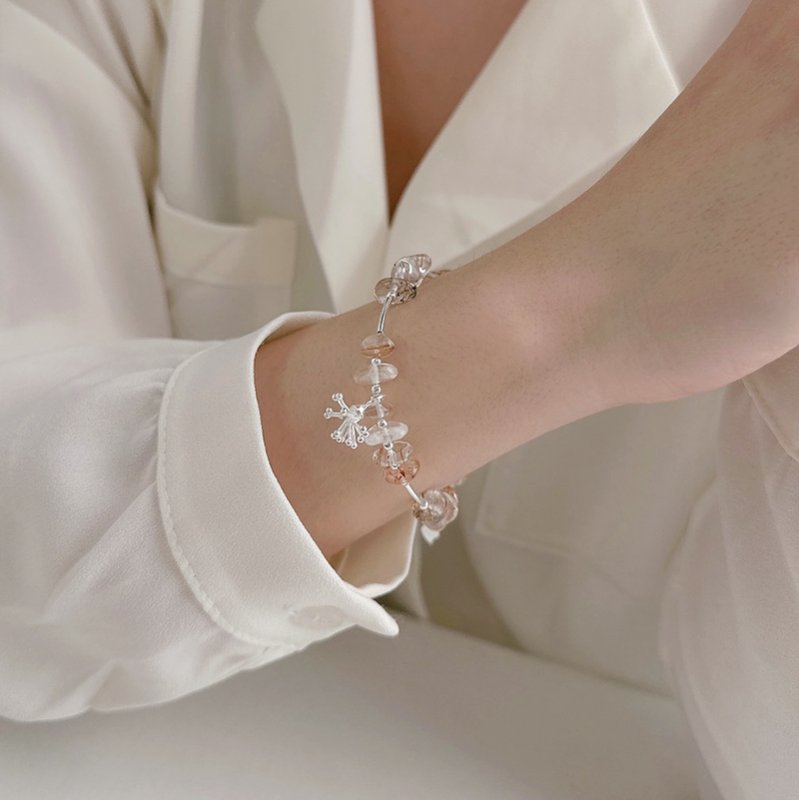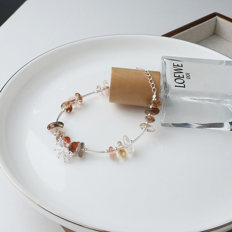 HB-447-B 黑晶超七水晶垂吊花蕊銀手鍊