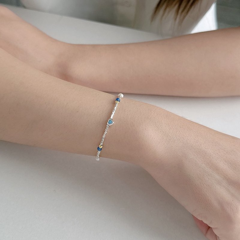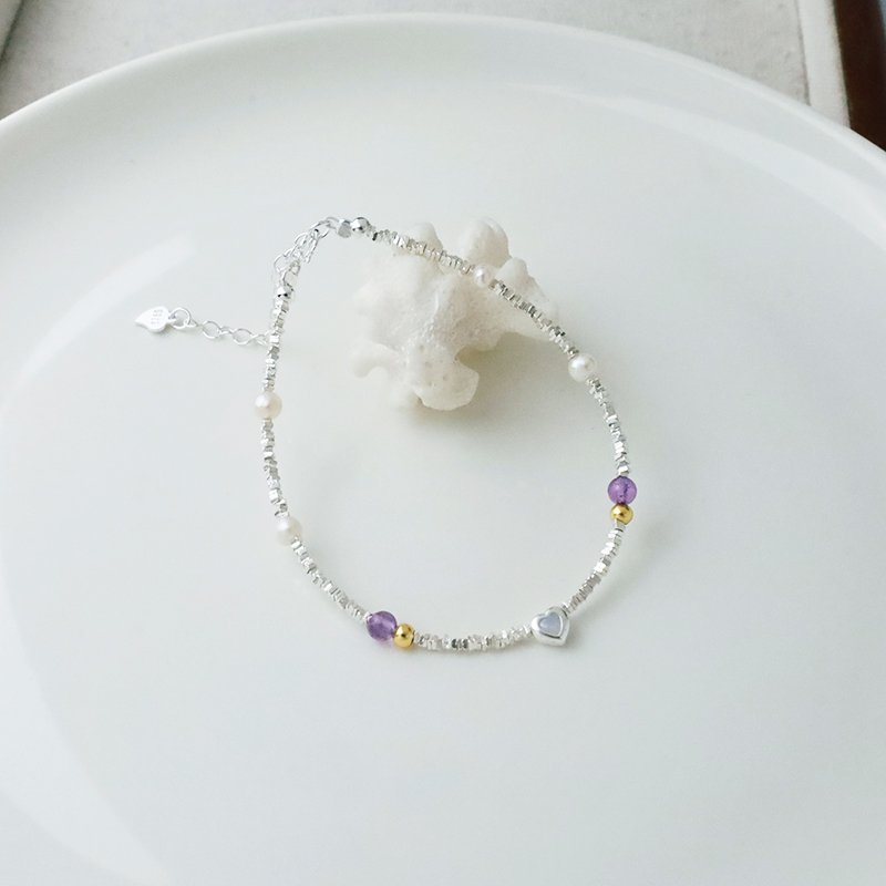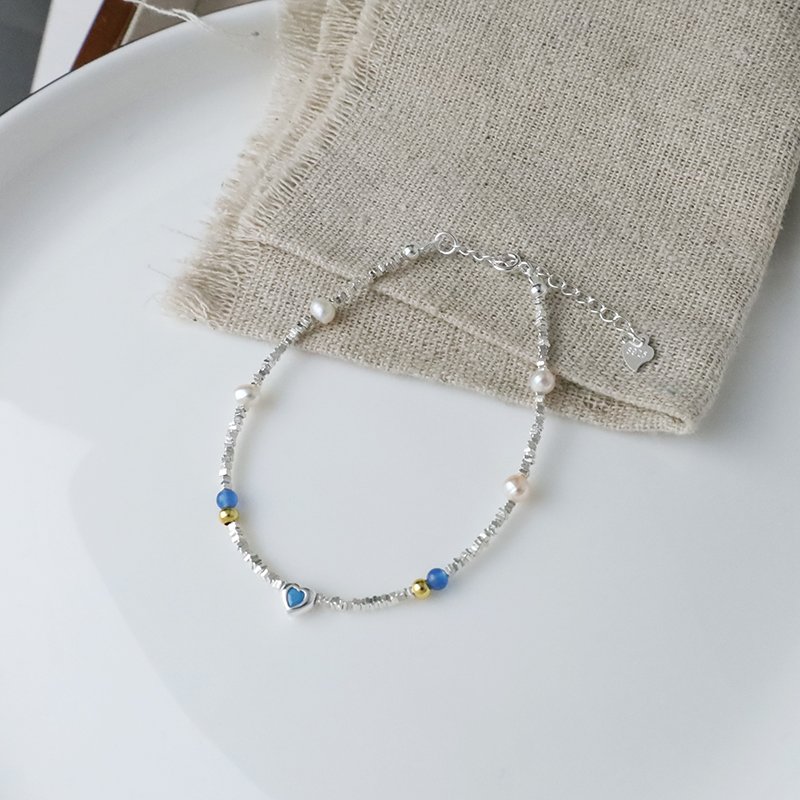 HB-448-B 愛心水晶拼接珍珠碎銀手鍊(藍/紫)