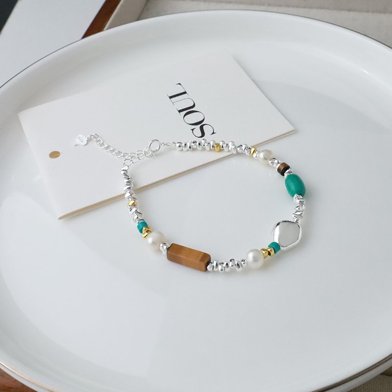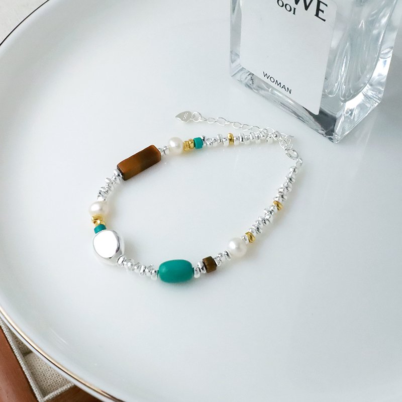 HB-447 不規則拼接虎眼綠松石碎銀手鍊