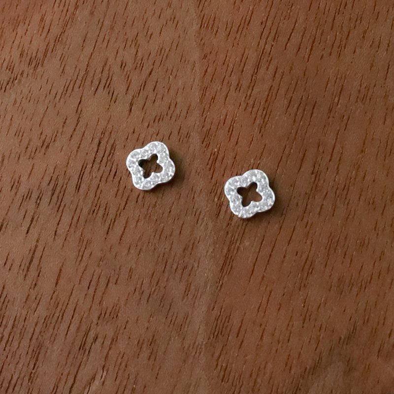 ES213-E 鏤空四瓣小花鎖針耳貼