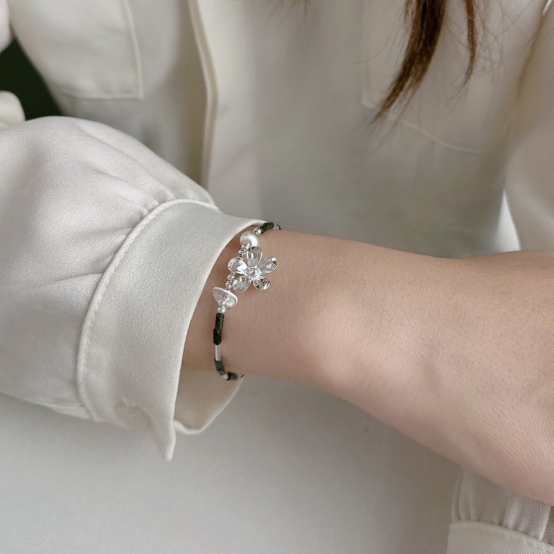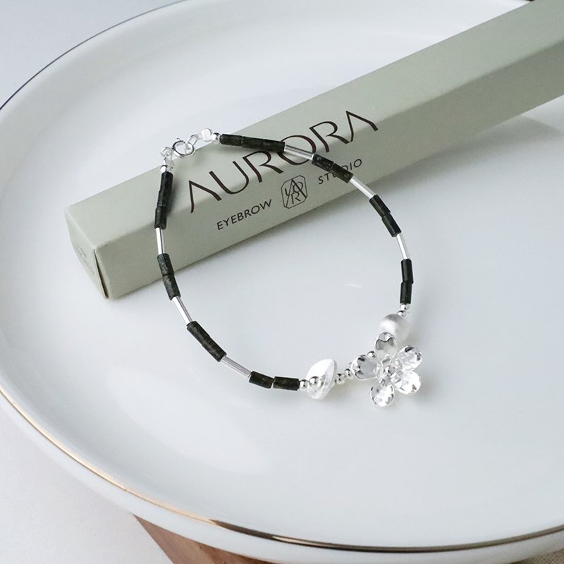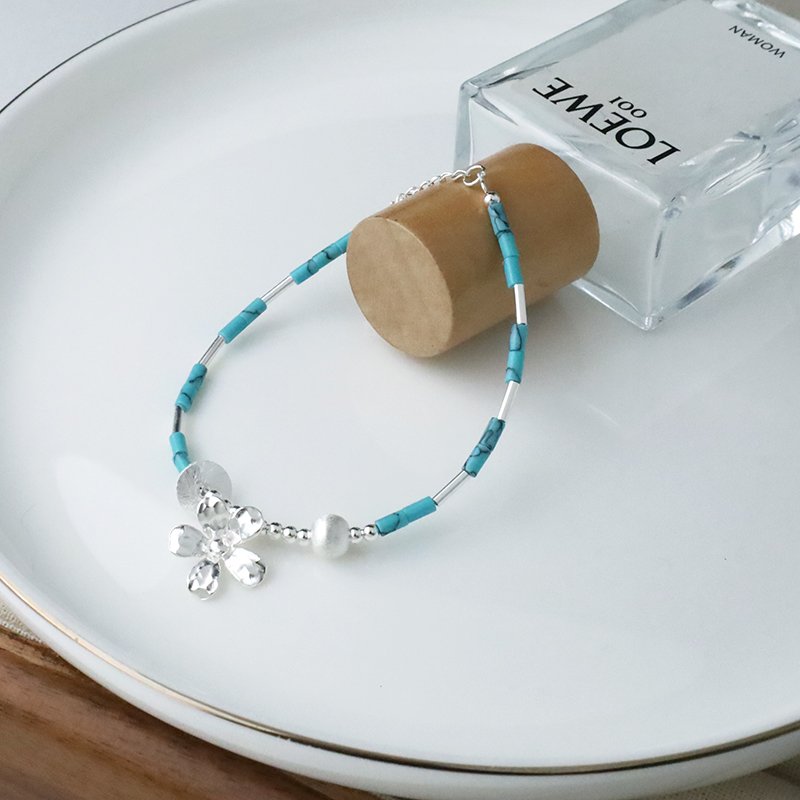 HB-450 吊花花銀管拼接寶石造型手鍊(虎眼石/綠松石)