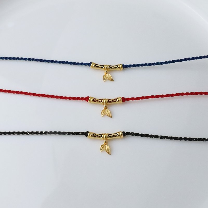 HBT-088	 S刻花垂吊葉子竹節管編織手繩(紅/黑/藍)(手工製作約3-5天‧可預訂長度)