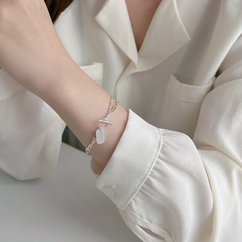HB-211 扁鱔雙鍊垂吊橢圓牌OT手鍊(可刻字)