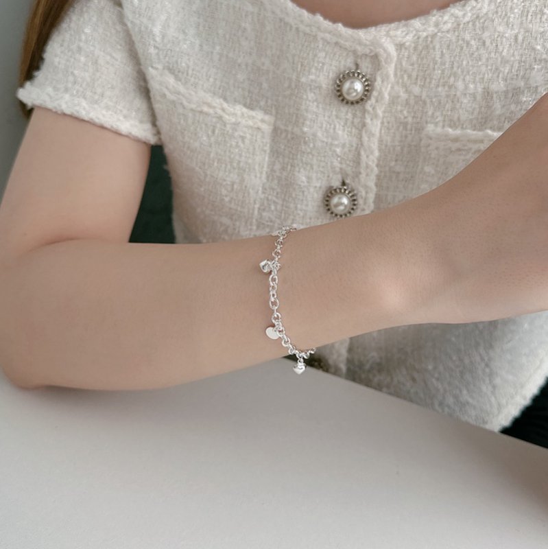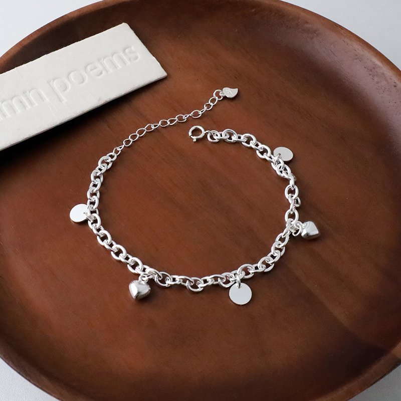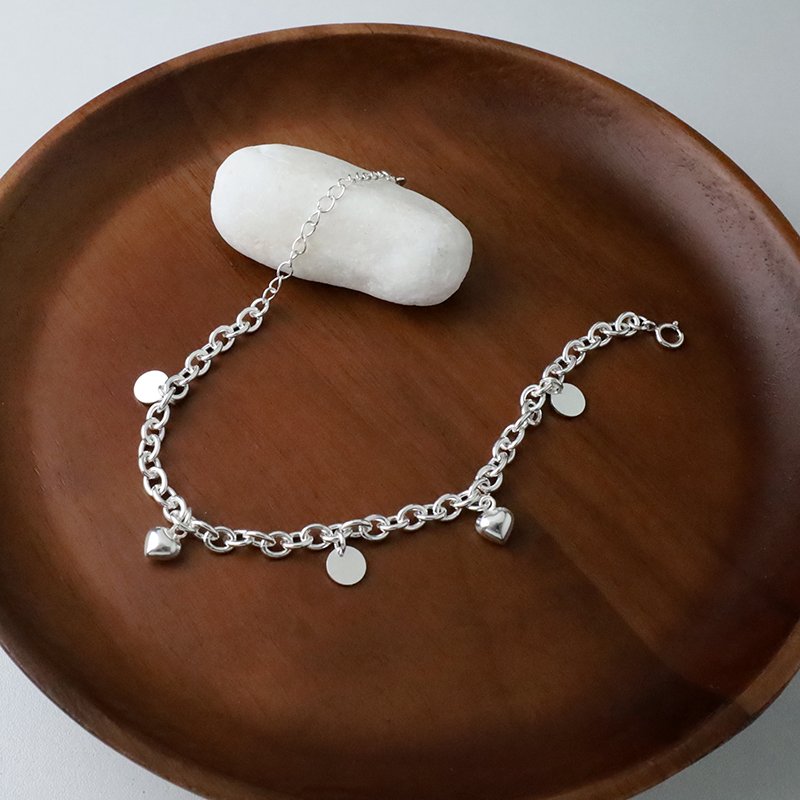 HB-144-D 垂吊愛心圓牌造型銀手鍊