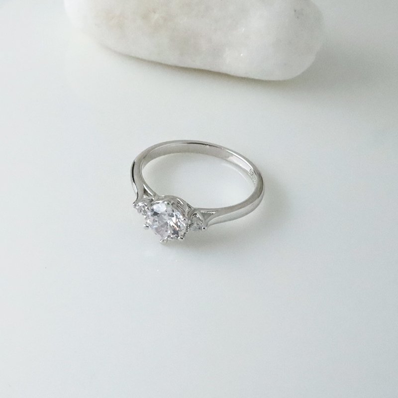 R383-D 爪鑲滾邊鑲鑽造型銀戒(#5-10)