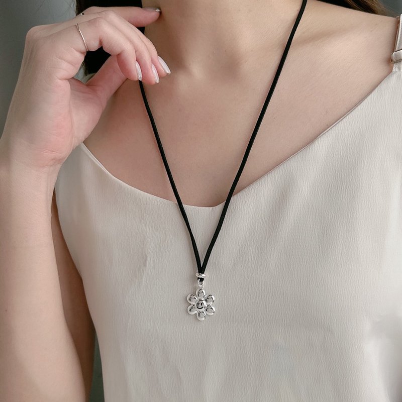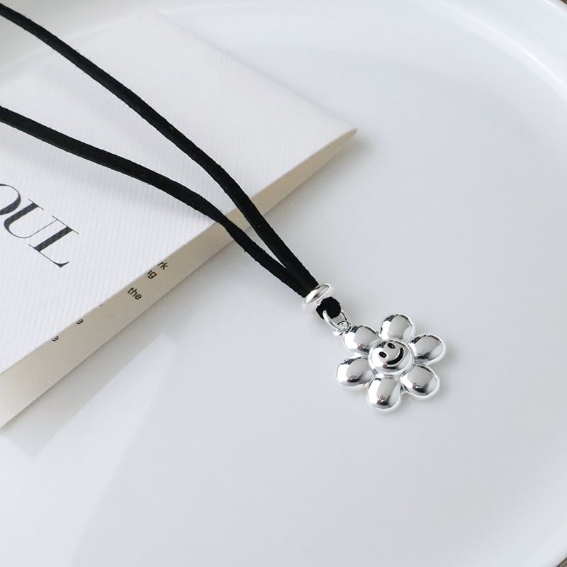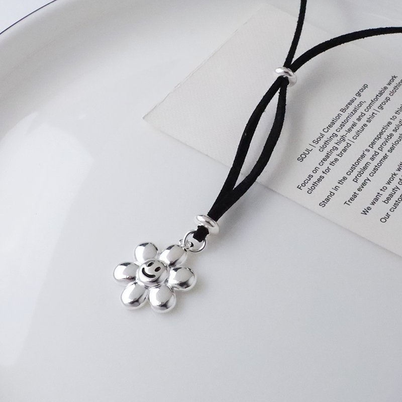 N508-C 微笑小花麂皮皮繩伸縮長鏈