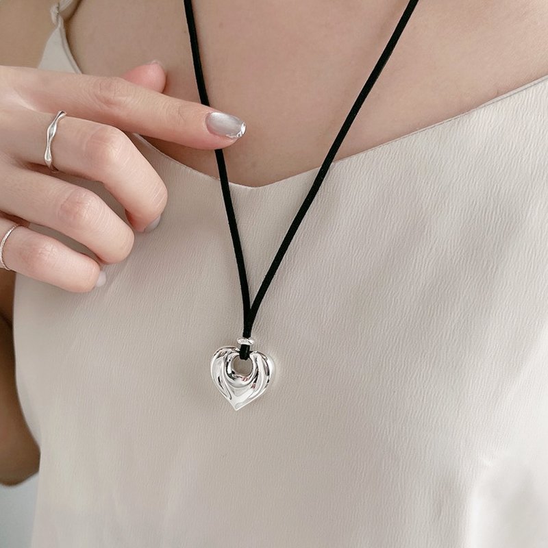 N508-B 水滴愛心麂皮皮繩伸縮長鏈