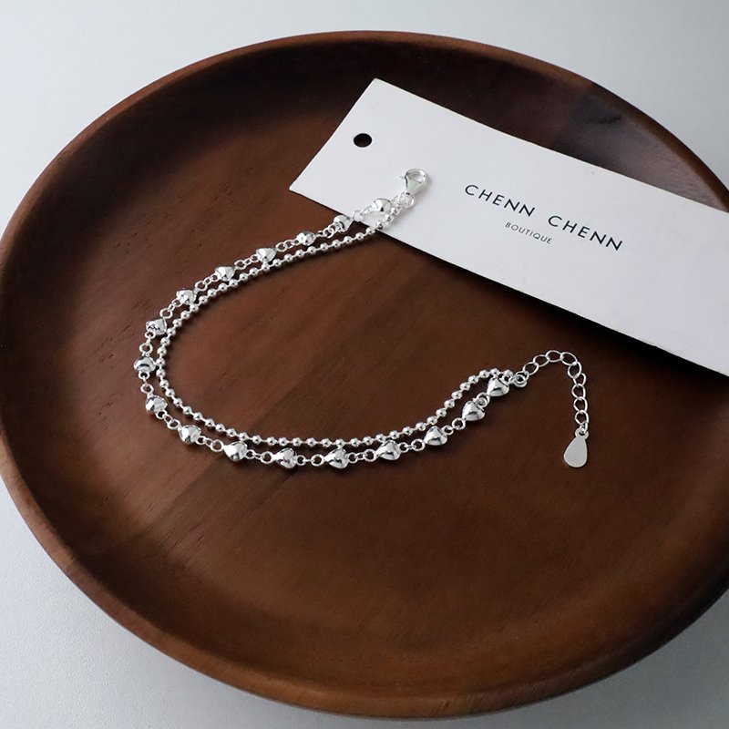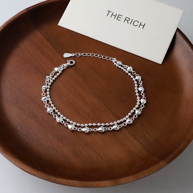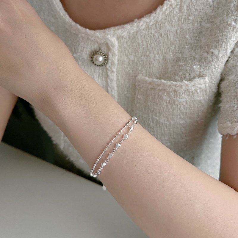 HB-397-E 連續愛心珠珠雙鍊造型銀手鍊