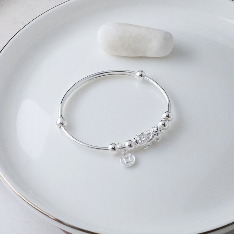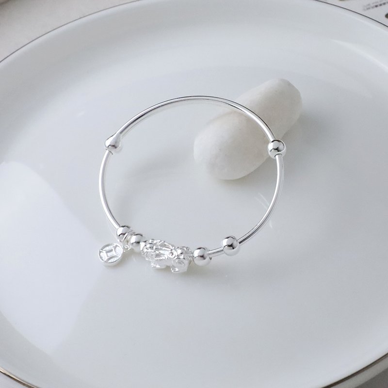 HR-237-C 貔貅圓珠可調式垂吊古錢銀手環