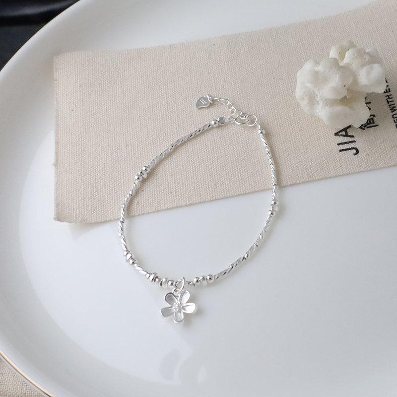 HB-273-B 刻花銀管垂吊小花銀手鍊