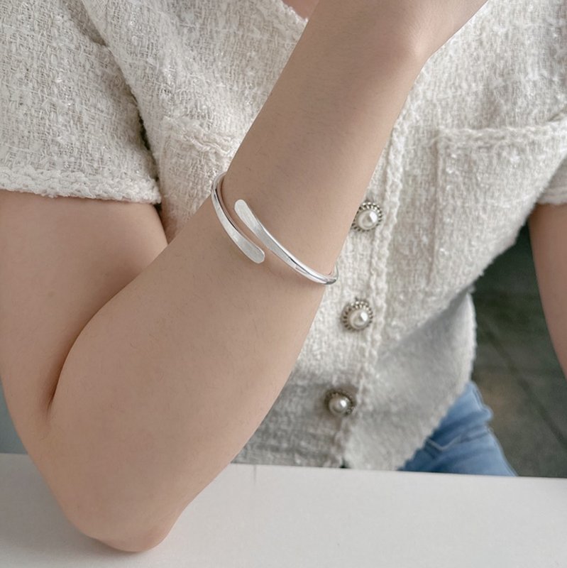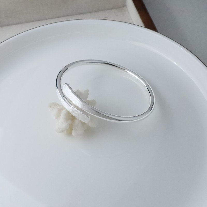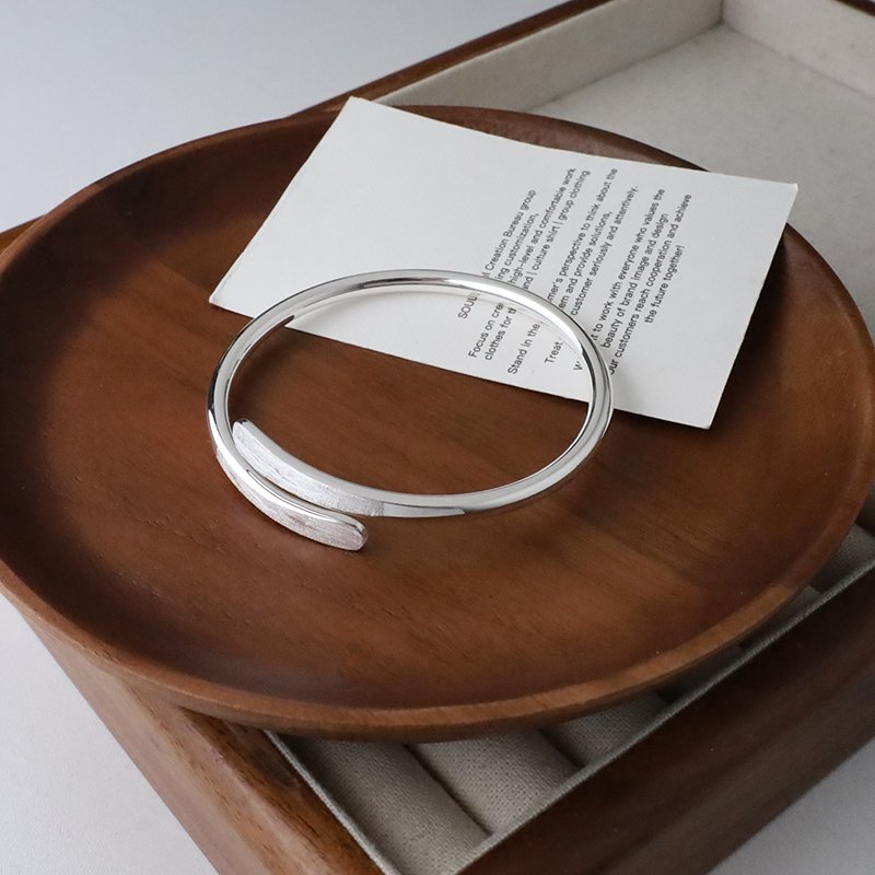 HR-371 拉絲拼接圓身交錯開口銀手環