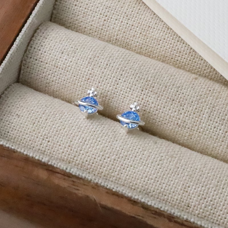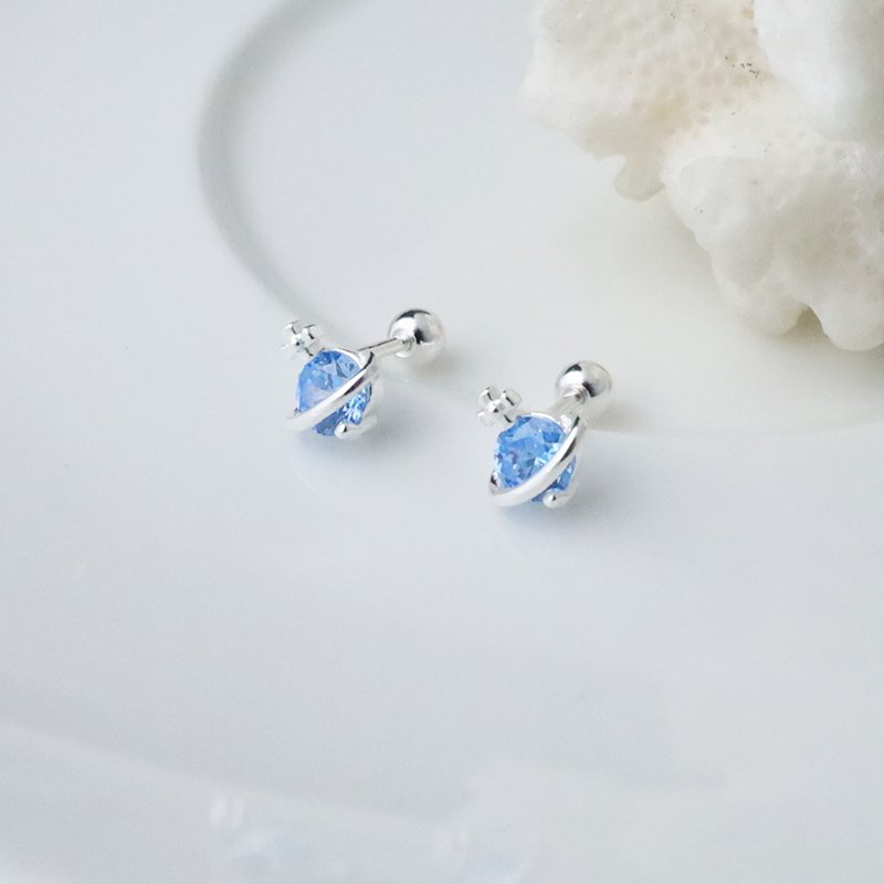 ES03-E 星球鋯石鎖針耳貼(藍)