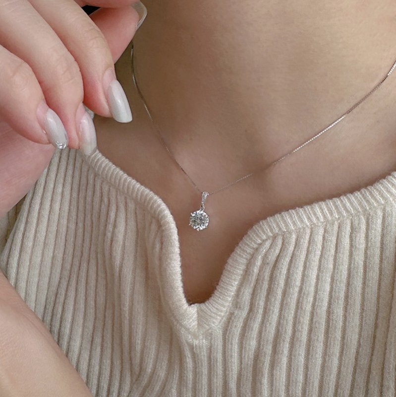N493-D 鑲鑽垂吊六爪莫桑石套鍊