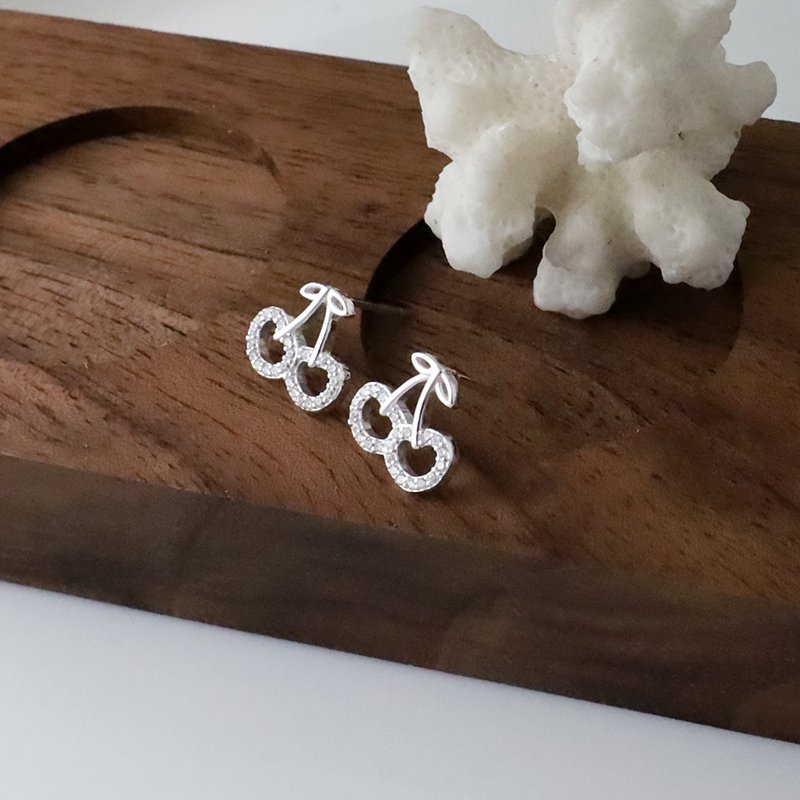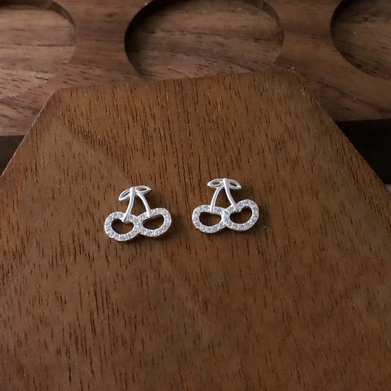 ES480-E 鏤空鑲鑽櫻桃造型耳貼