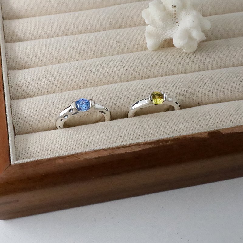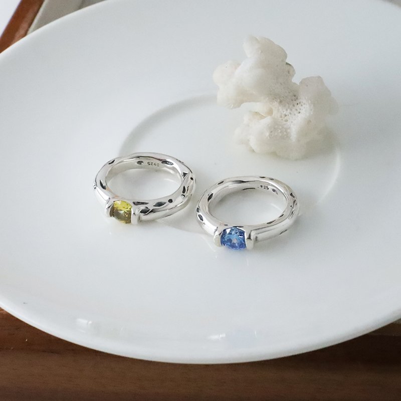 R445-F 鋯石敲打壓紋銀戒(藍/黃)(#6.5-7)