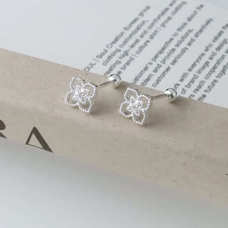 ES439-F 滾邊圓框四瓣鋯石小花鎖針耳貼