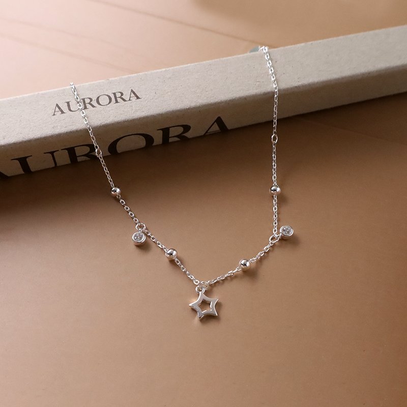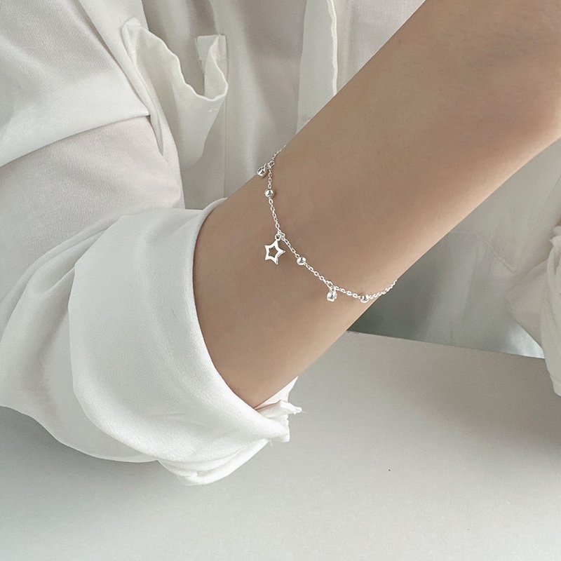 HB-264-C 珠珠垂吊星星單鑽細銀手鍊