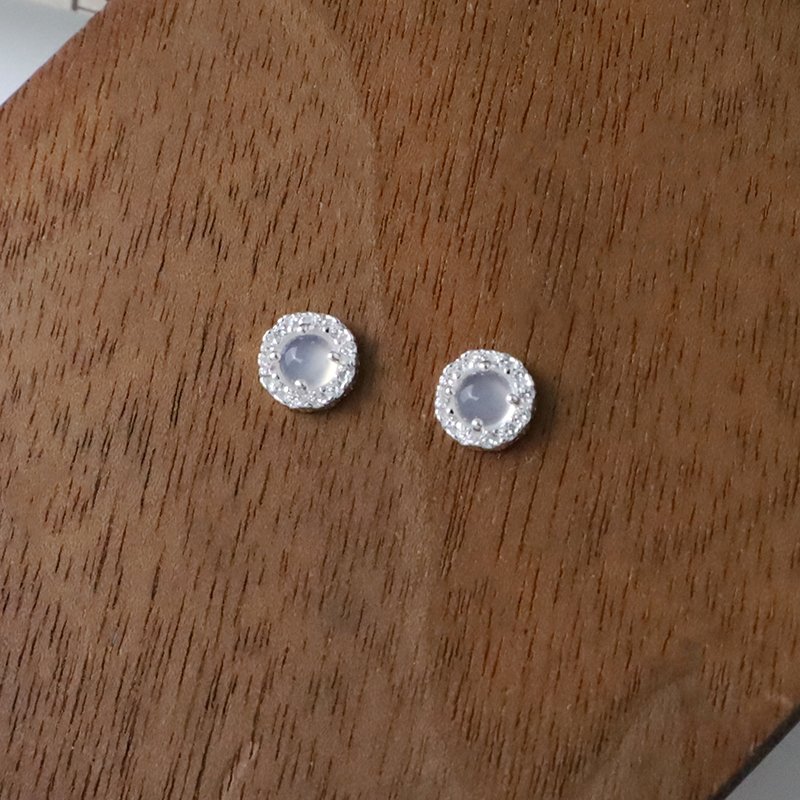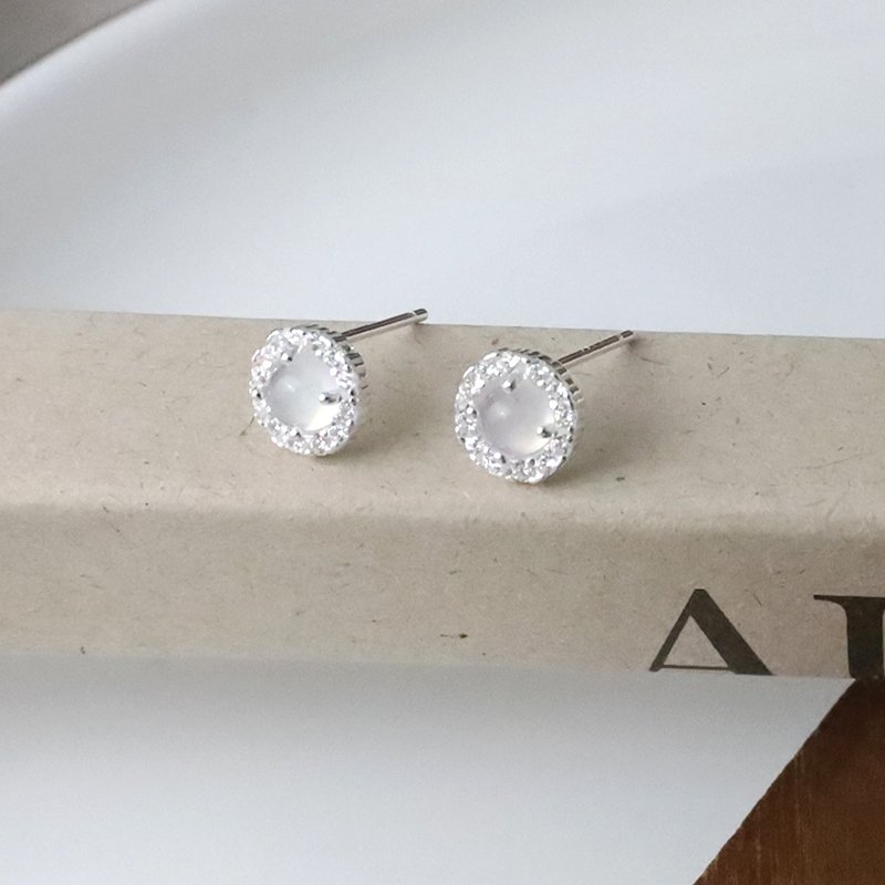 ES05-F 鑲鑽花邊白玉隨造型耳貼