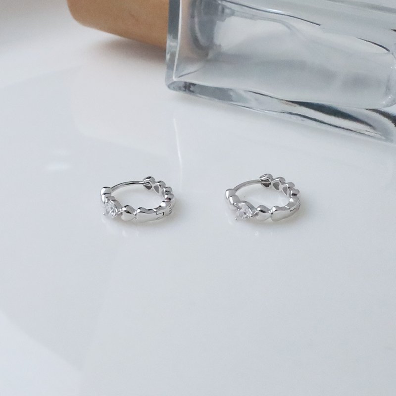 EB-255-D 銀白K連續愛心拼接鑲鑽易扣