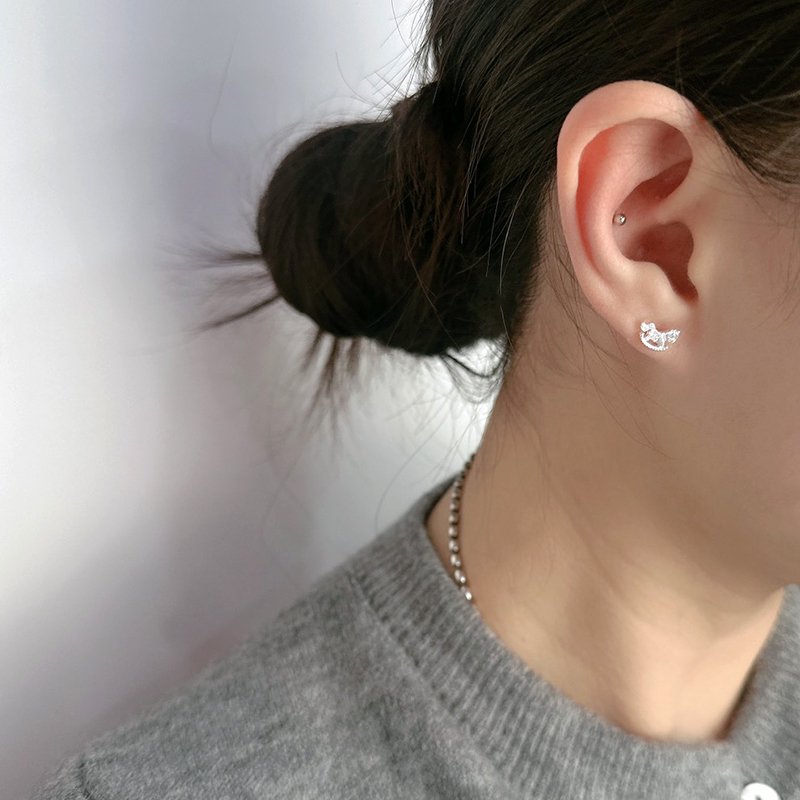 ES79-F 霧銀小貓造型鎖針耳貼