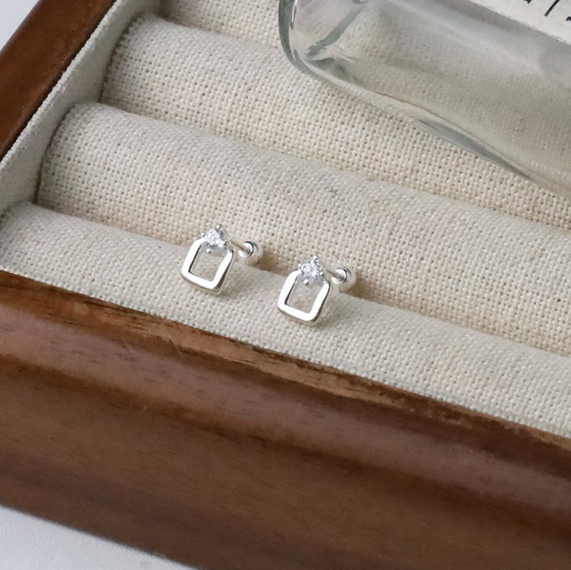 ES219-B 鏤空方形小鑽鎖針耳貼