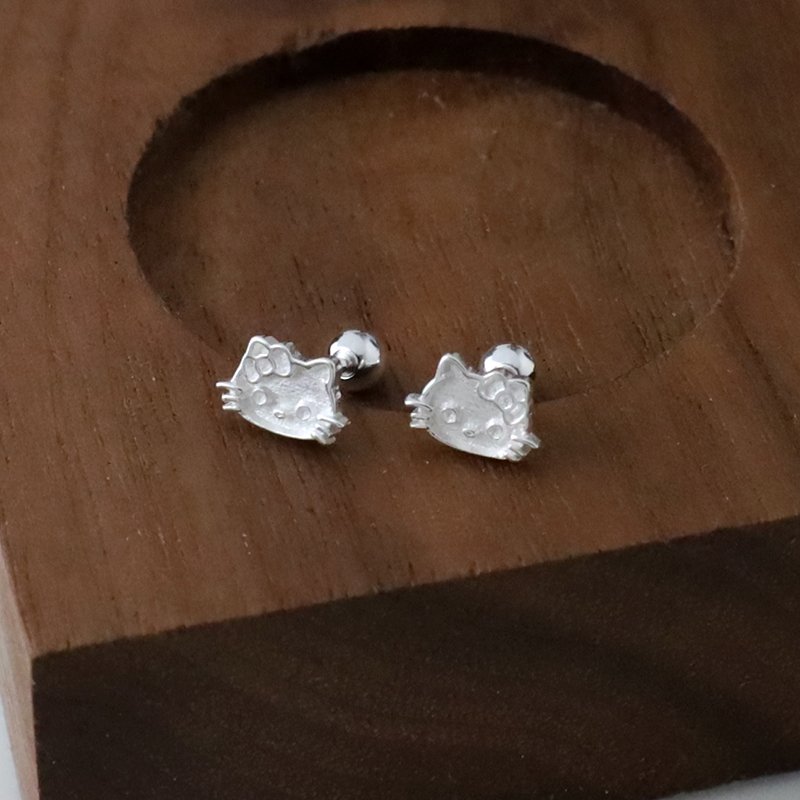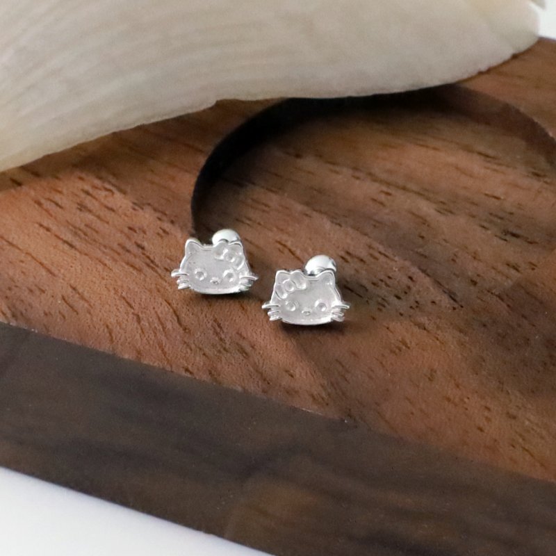 ES79-F 霧銀小貓造型鎖針耳貼