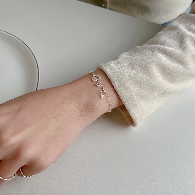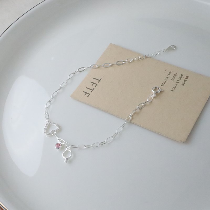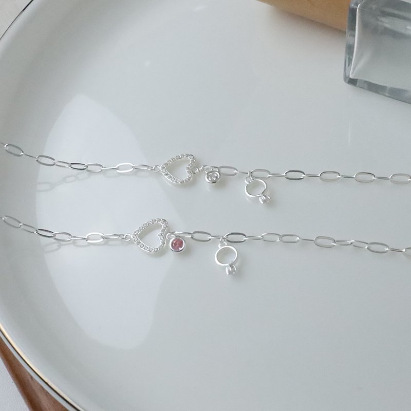 HB-140-D 鏤空愛心圓鑽戒子銀手鍊(白/粉)