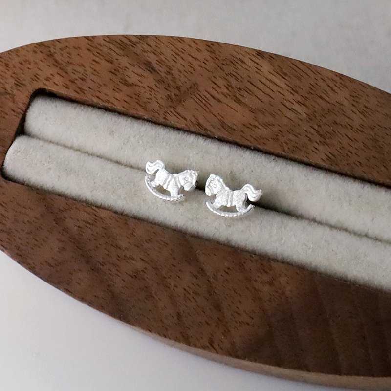 ES566-C 霧銀搖搖馬鎖針耳貼