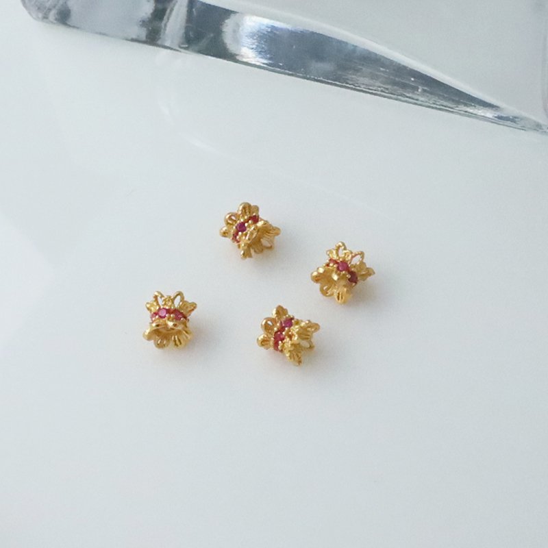 T65-27 鑲鑽蓮花雙托隔珠(黃K金)(粉/綠)(配件)
