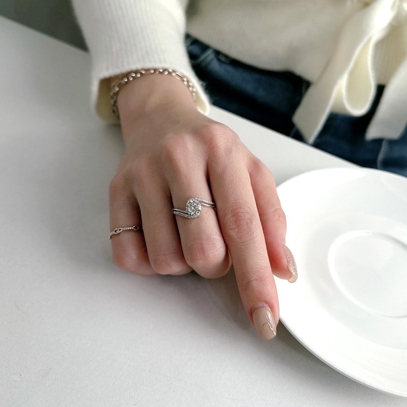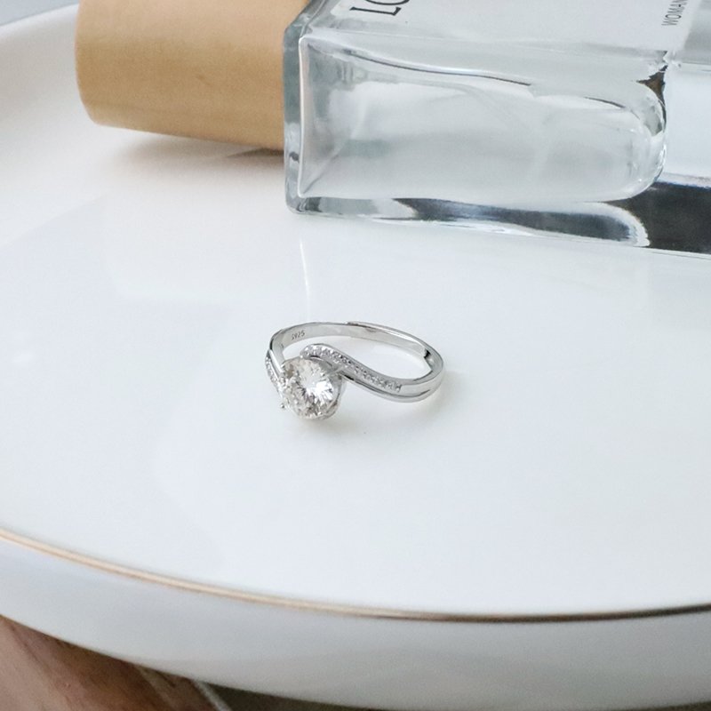 R582-C 雙線S鑲鑽莫桑石活圍戒