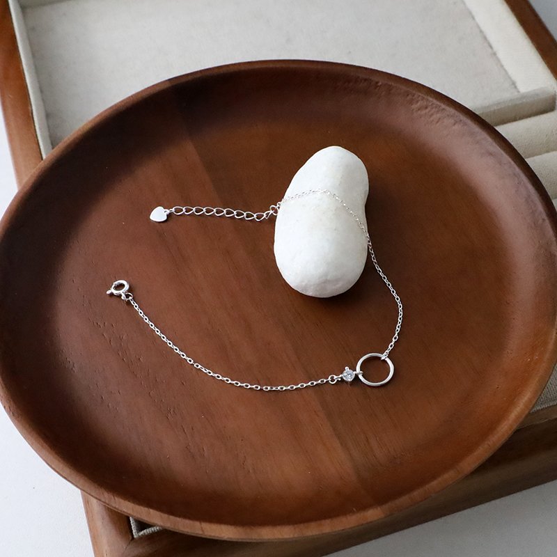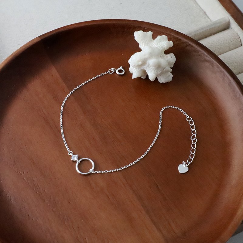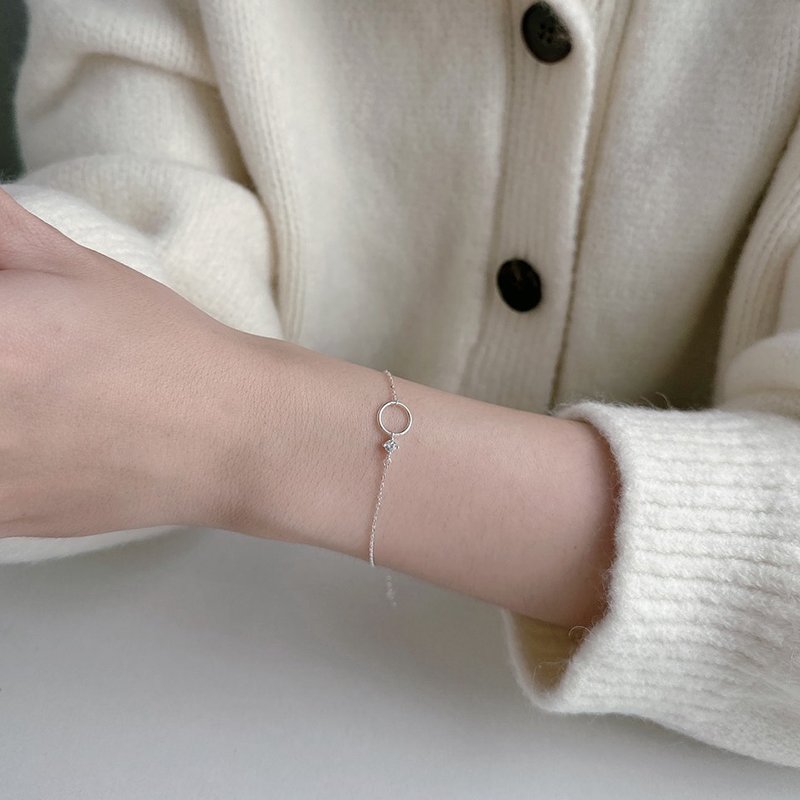 HB-115-E 鏤空交錯鑲鑽圈圈造型銀手鍊