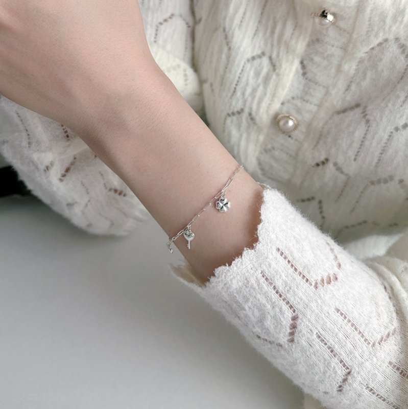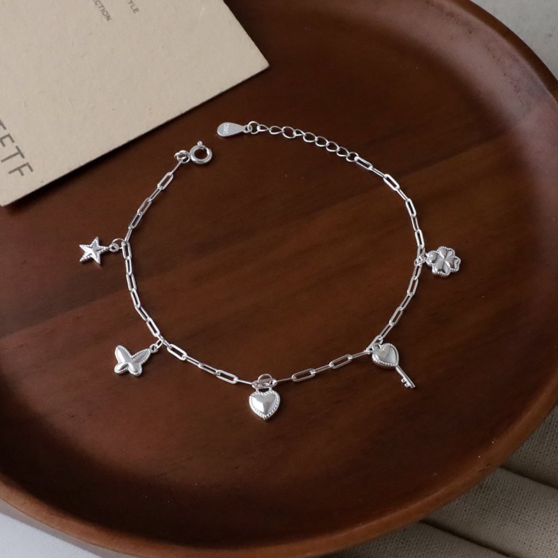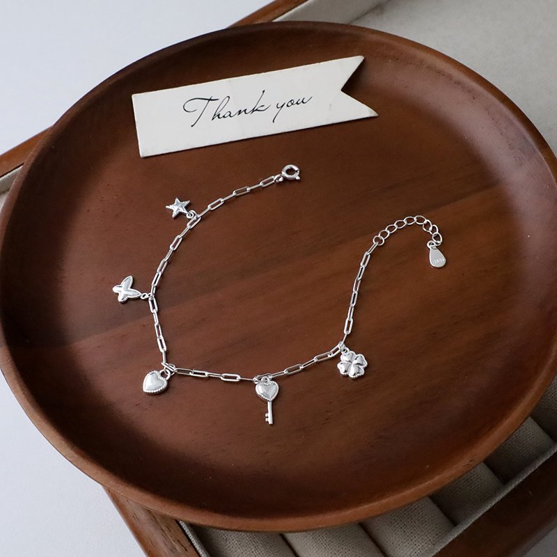 HB-316-E 垂吊愛心鎖匙蝴蝶星星幸運草銀手鍊