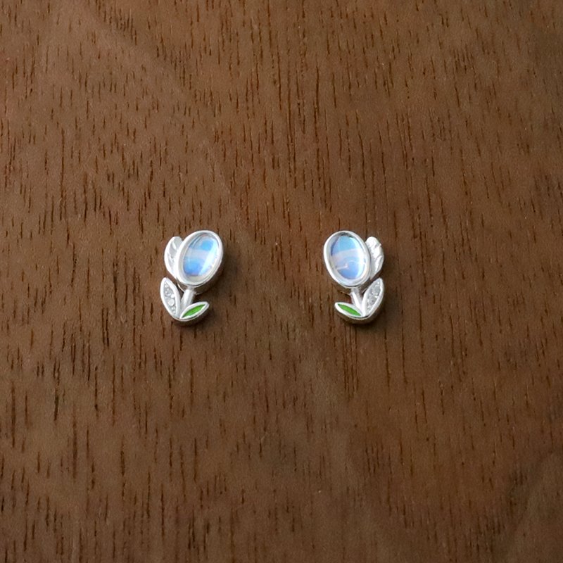 ES09-D 可愛小花科技石鑲鑽耳貼