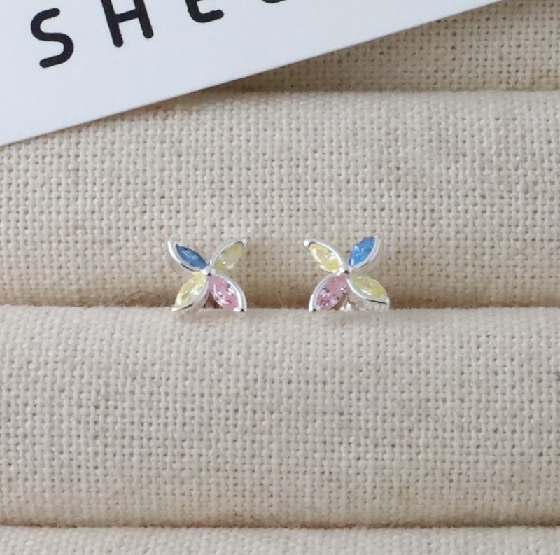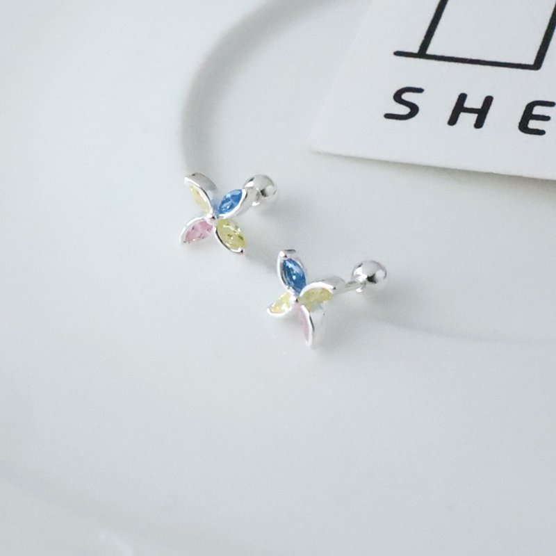ES352-D 彩鑽風車小花造型鎖針耳貼