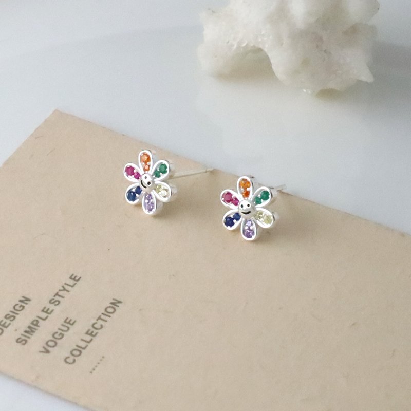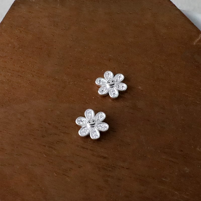 ES48-F 笑臉小花鑲鑽造型耳貼(白鑽/彩鑽)