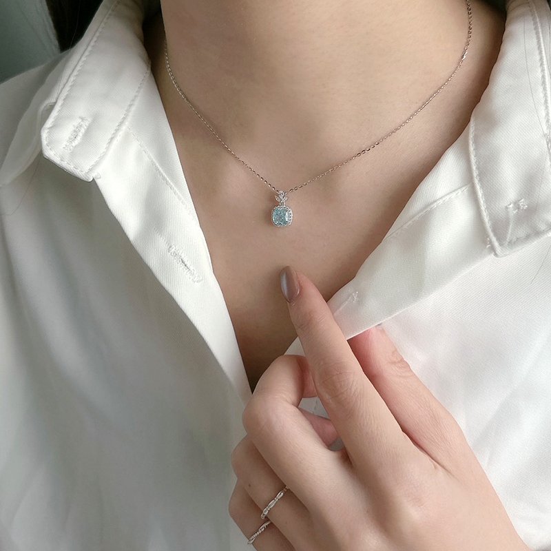 N520 鑲鑽三葉方型冰花切鋯石套鍊(粉/綠/白/藍)