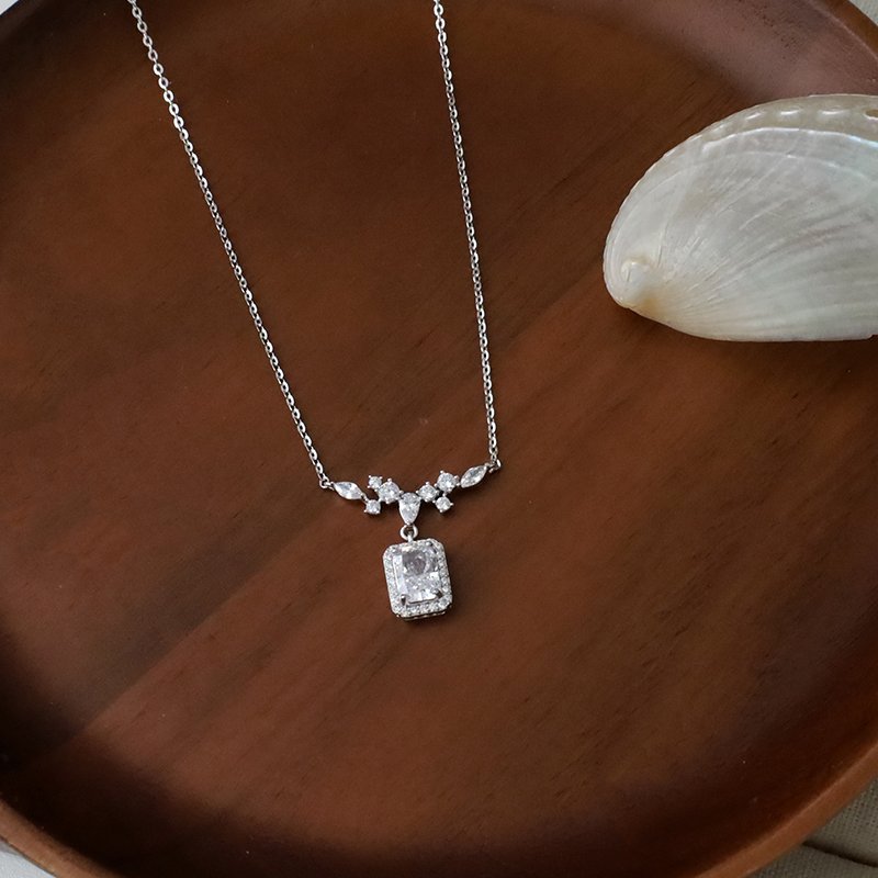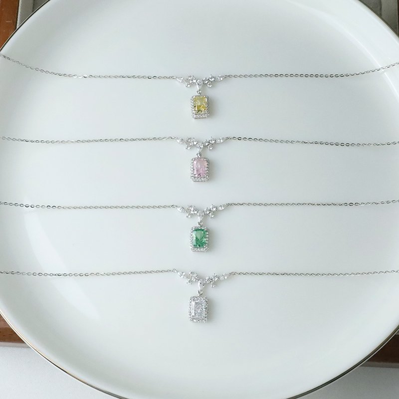 N520-B 鑲鑽長方冰花切鋯石套鍊(白/粉/黃/綠)