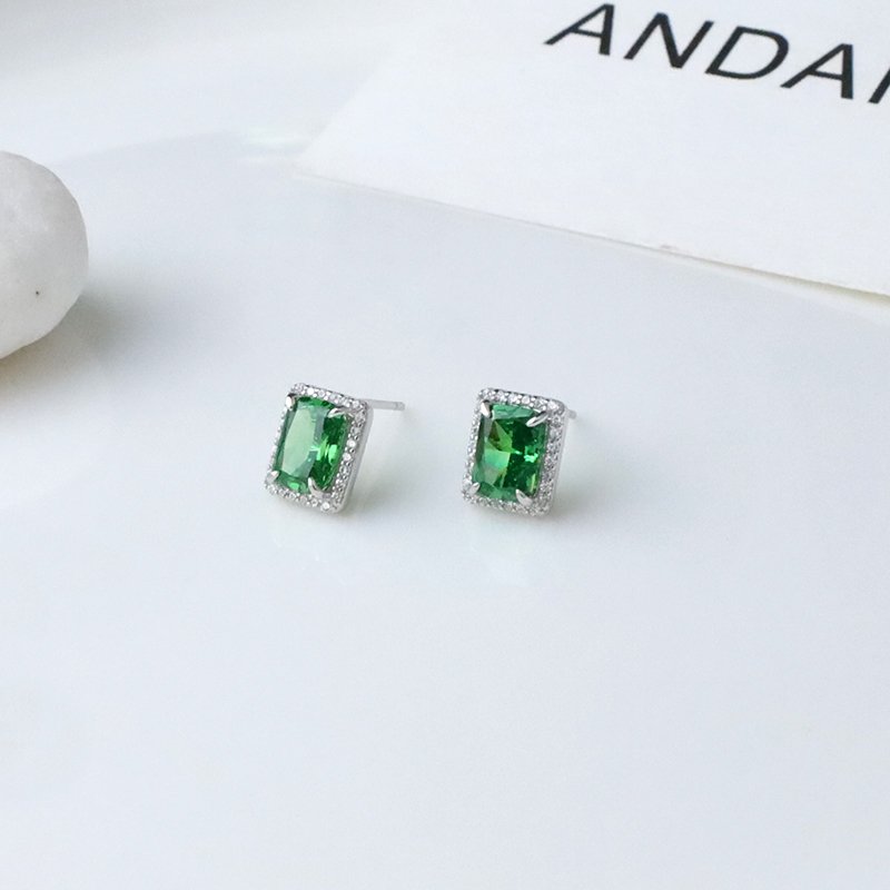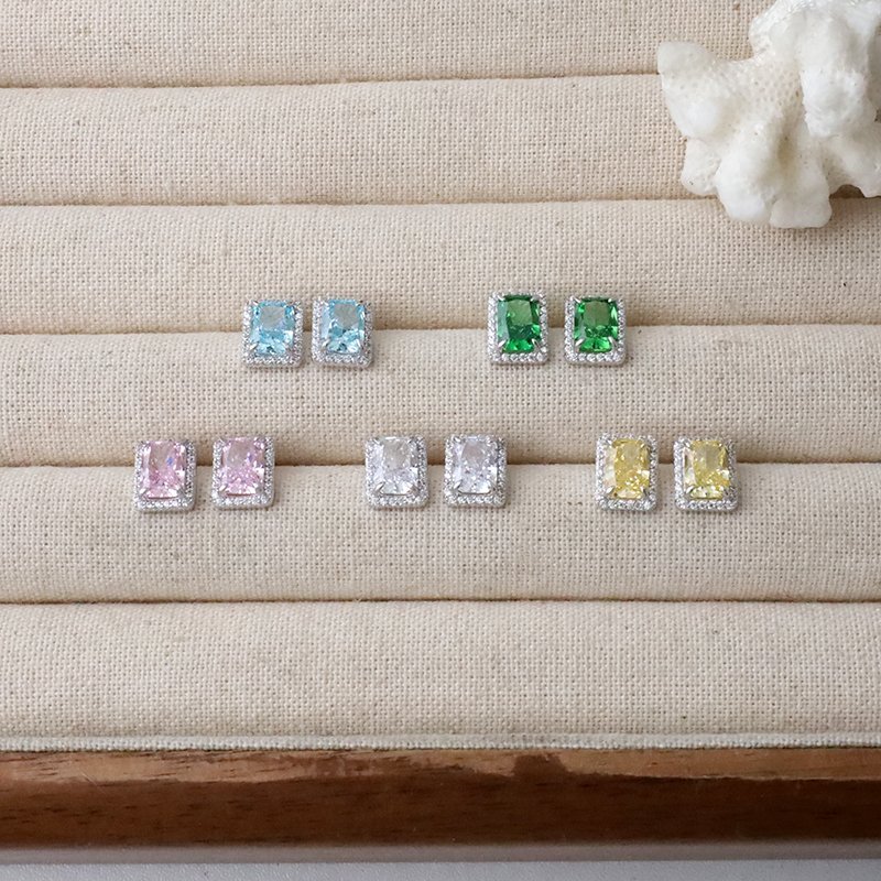 ES569-F 鑲鑽長方冰花切鋯石耳貼