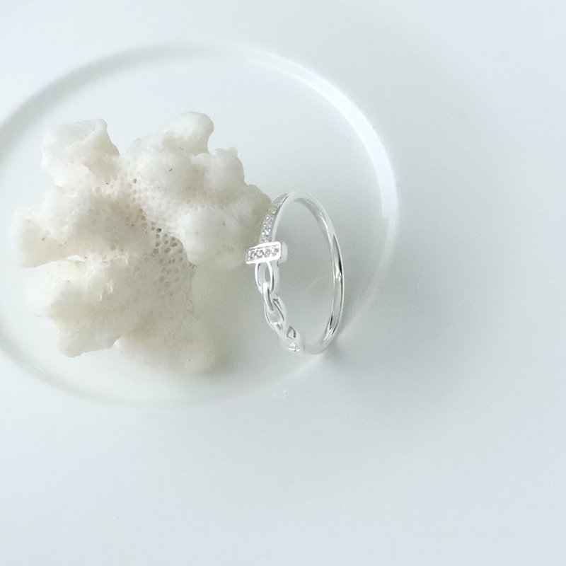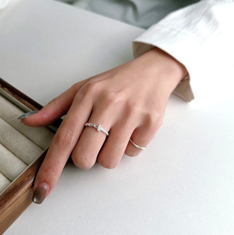 R584 T鑽拼接扣環造型銀戒