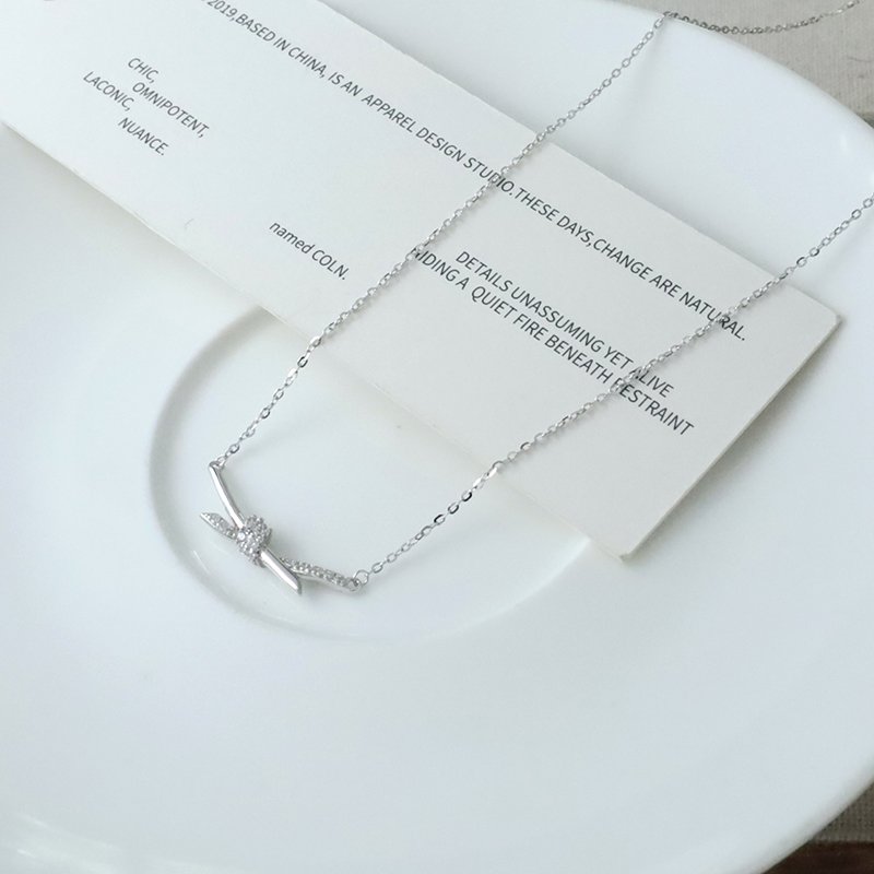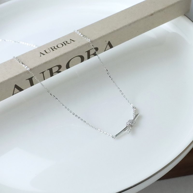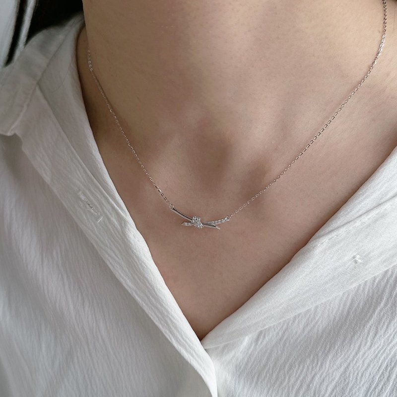 N365-B 繩結拼接鑲鑽造型套鍊(銀白K)