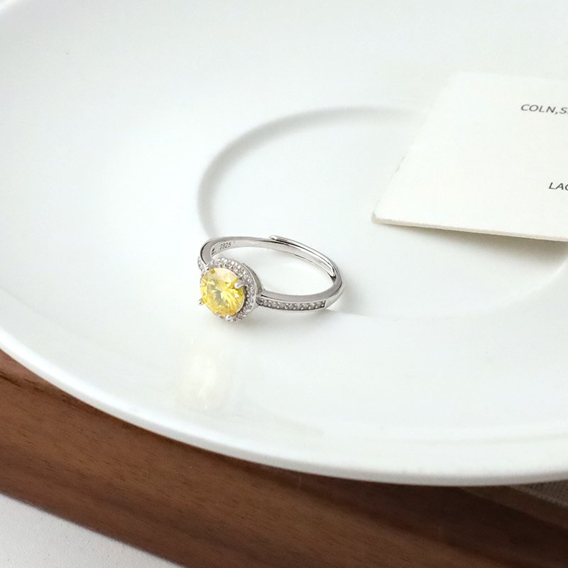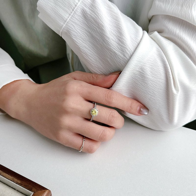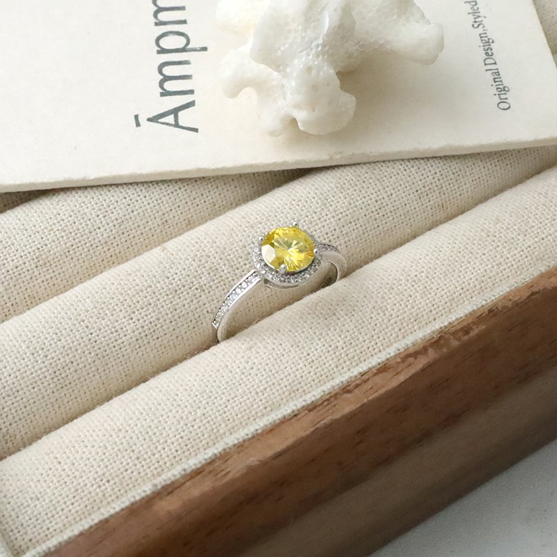 R588-C 滾邊鑲鑽黃莫桑石造型活圍戒