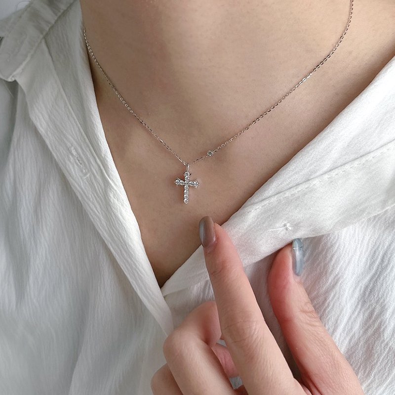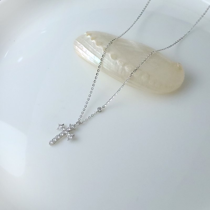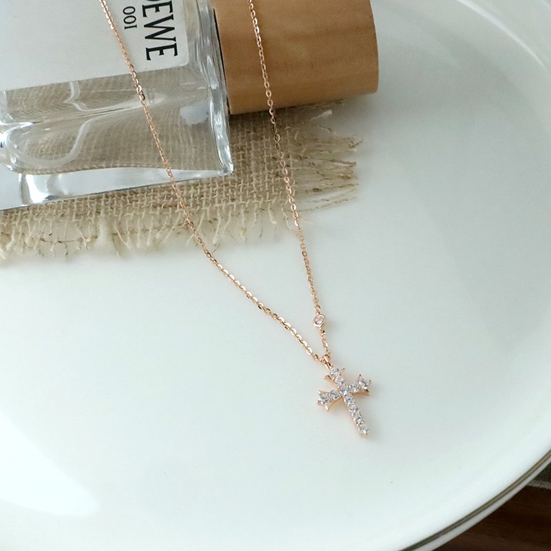 N68-D 爪鑲十字造型套鍊(銀白K/玫金)