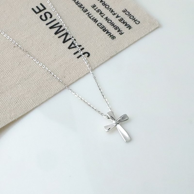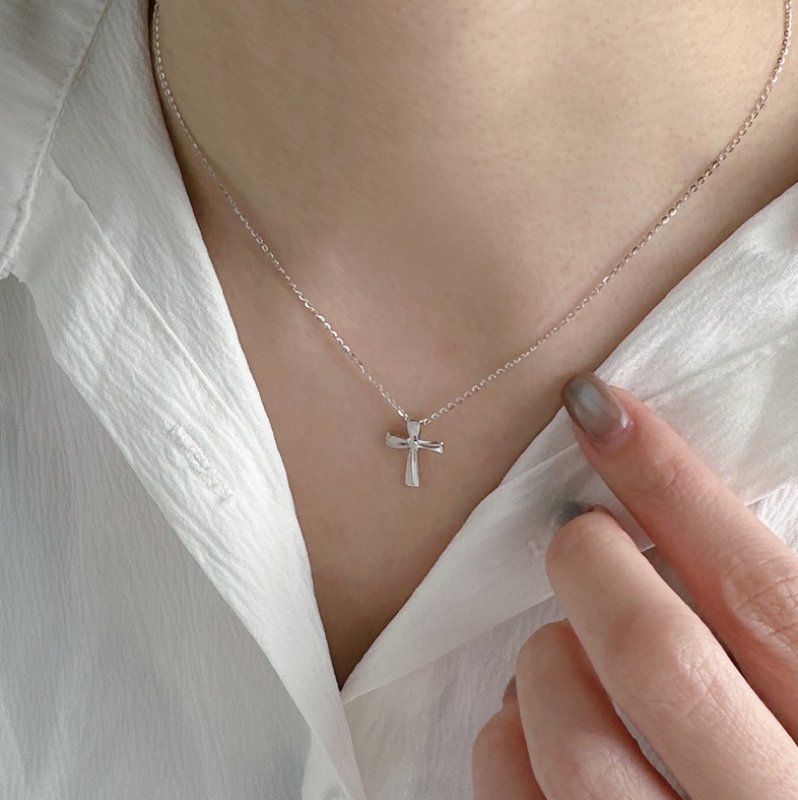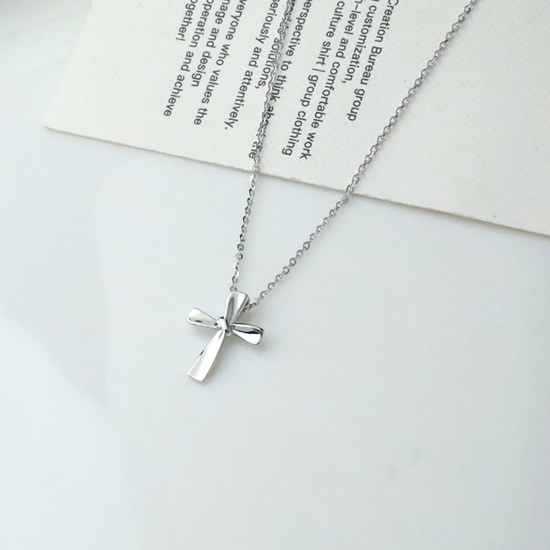 N456-C 素面扭結十字架造型套鍊(銀白K)