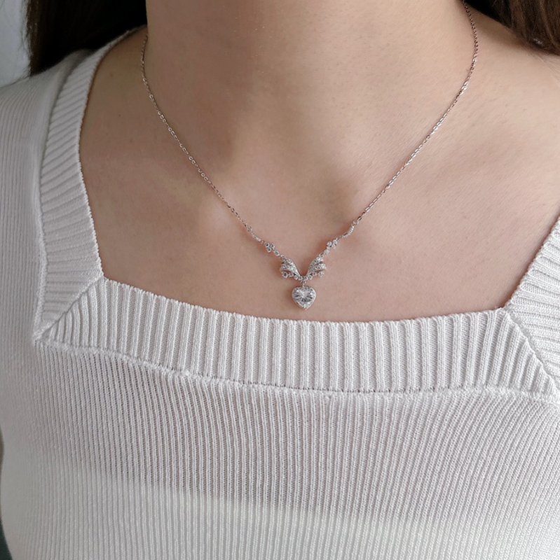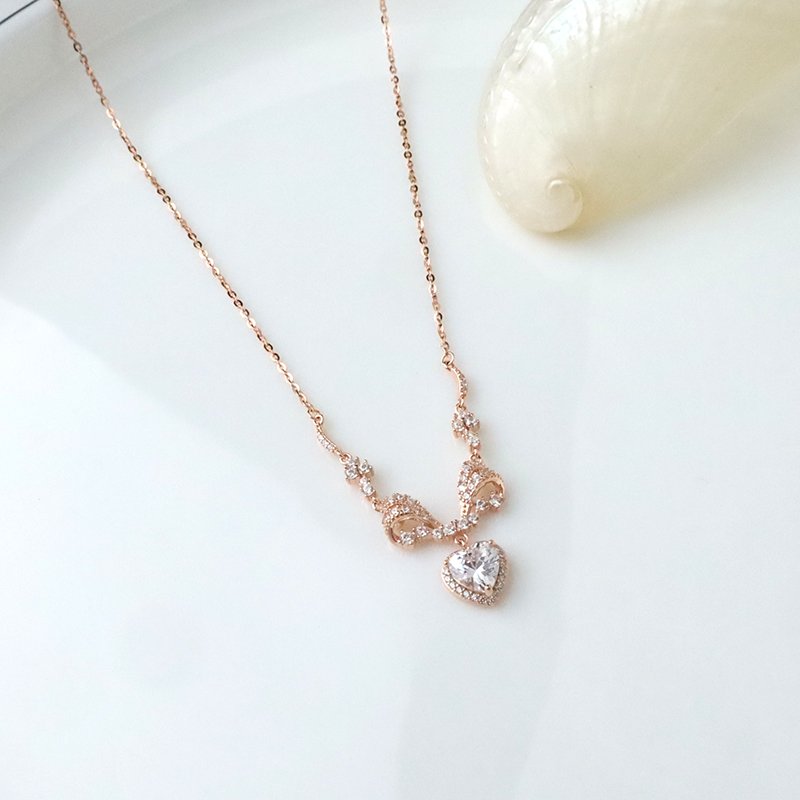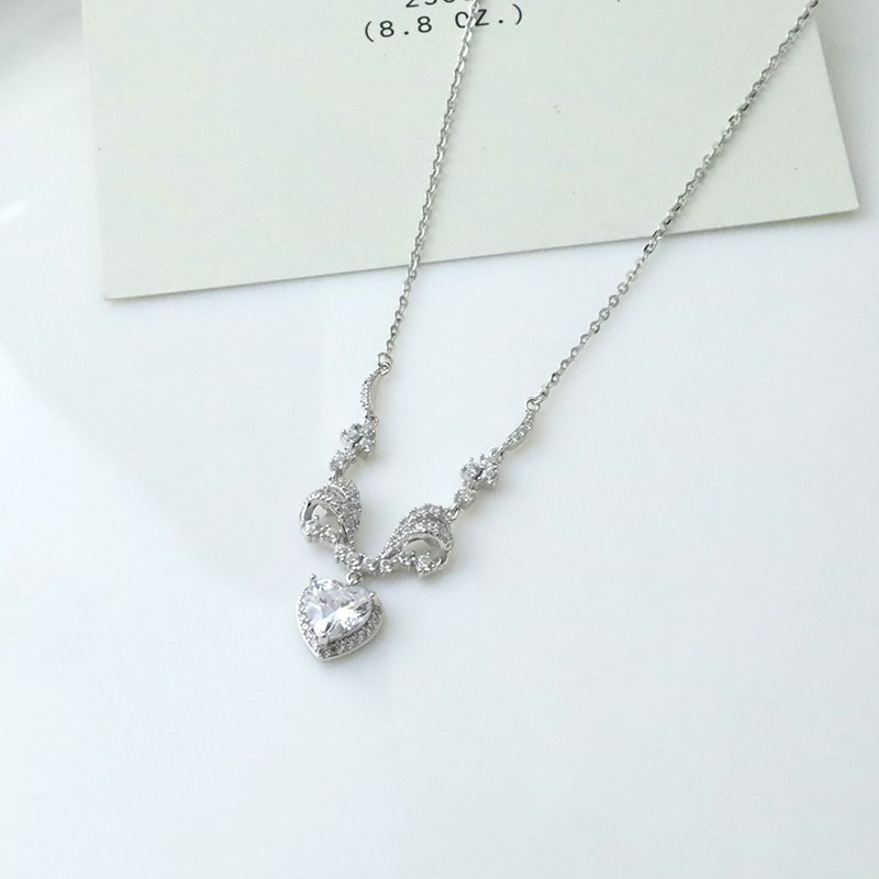 N521-E V字鑽蝴蝶結垂吊愛心造型套鍊