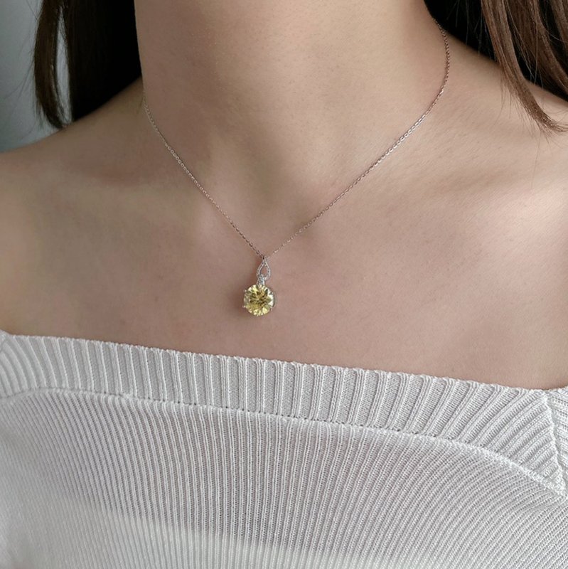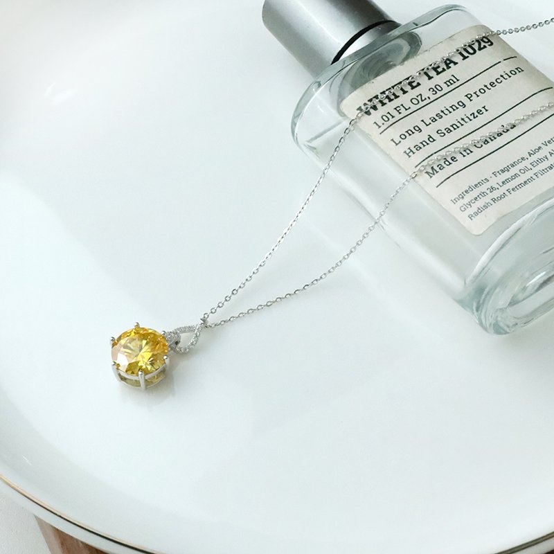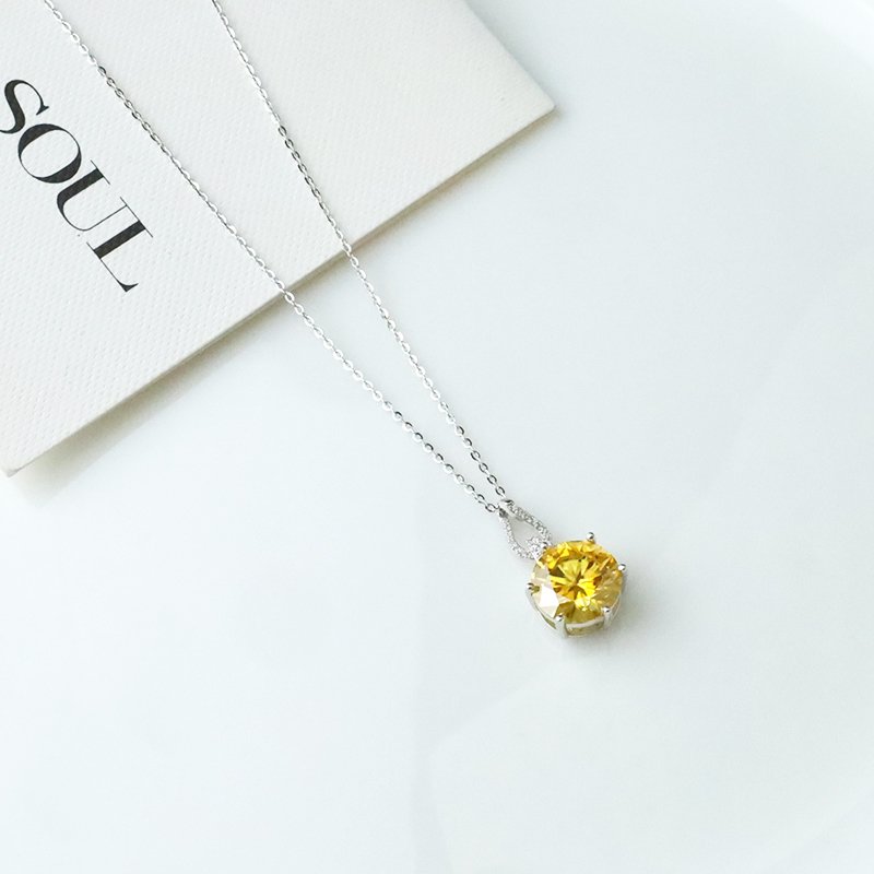 N522-C 波浪鏤空垂吊黃莫桑石造型套鍊
