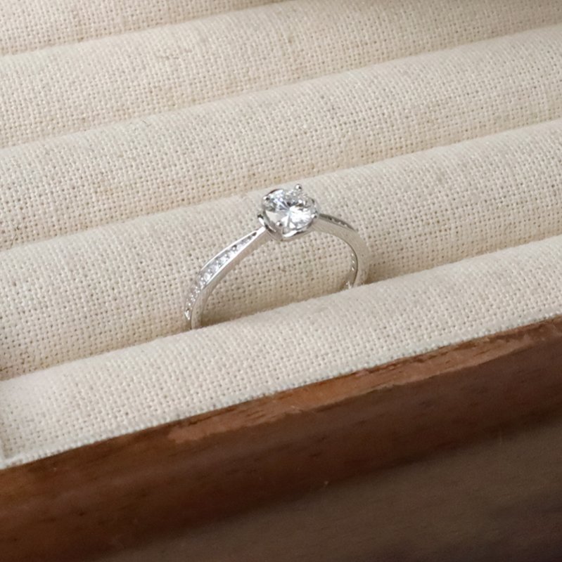 R585-E 斜邊排鑽花苞莫桑石活圍戒